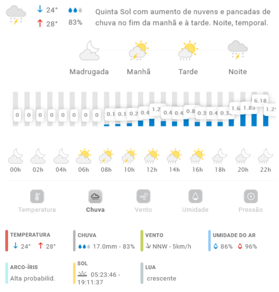 Penha Previsão do tempo Previsão do tempo para Penha: quinta-feira, 1 de janeiro 2026 31 de dezembro de 2025 PUBLICIDADE Imagem: climatempo.com.br Continue Reading Anterior Turista ofende dona de comércio em Penha, apanha e acaba presoSeguinte Transporte universitário em Penha: Inscrições para o primeiro semestre de 2026 se iniciam no dia 1º de janeiro Publicações mais recentes Penha Previsão do tempo Previsão do tempo para Penha: sábado, 7 de março de 2026 6 de março de 2026 Penha Polícia Operação Rede Catarina prende criminoso no Centro de Penha pelo crime de violência doméstica 6 de março de 2026 Penha Polícia Polícia Militar prende homem pelos crimes de ameaça e perseguição em Penha 6 de março de 2026