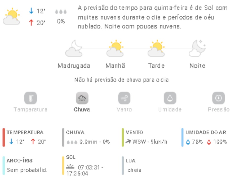 Penha Previsão do tempo Previsão do tempo para Penha: quinta-feira, 10 de julho 2025 9 de julho de 2025 PUBLICIDADE Imagem: climatempo.com.br Continue Reading Anterior 7º Encontro dos Amigos de Penha terá 31 barracas neste domingo na Praia AlegreSeguinte [VÍDEO] Batida entre duas motos deixou motoqueiro ferido em Penha Publicações mais recentes A voz do povo Esporte Penha Edital do Bolsa Atleta vira alvo de reclamações em Penha 7 de março de 2026 A voz do povo Educação Penha Trânsito Problema com rota de ônibus com estudantes de Penha faz crianças chegarem muito tarde em casa; pais reclamam 7 de março de 2026 A voz do povo Educação Penha ACS, ACE e professores da rede municipal de Penha indagam reajuste anual 7 de março de 2026