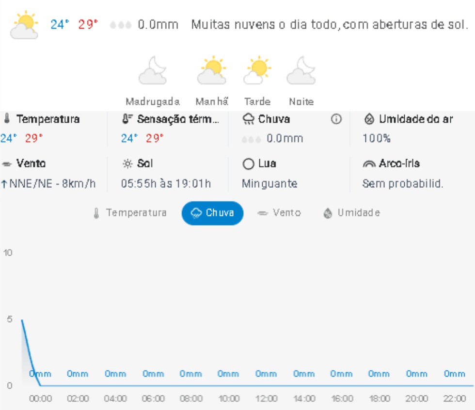 Penha Previsão do tempo Previsão do tempo para Penha: quinta-feira, 12 de fevereiro de 2026 11 de fevereiro de 2026 PUBLICIDADE Imagem: climatempo.com.br Continue Reading Anterior [VÍDEO] Penha: bairro Nossa Senhora de Fátima registra também matança de gatos por envenenamentoSeguinte Excesso de velocidade em avenida de Penha leva moradores a pedirem instalação de redutores Publicações mais recentes Penha Previsão do tempo Previsão do tempo para Penha: sábado, 7 de março de 2026 6 de março de 2026 Penha Polícia Operação Rede Catarina prende criminoso no Centro de Penha pelo crime de violência doméstica 6 de março de 2026 Penha Polícia Polícia Militar prende homem pelos crimes de ameaça e perseguição em Penha 6 de março de 2026