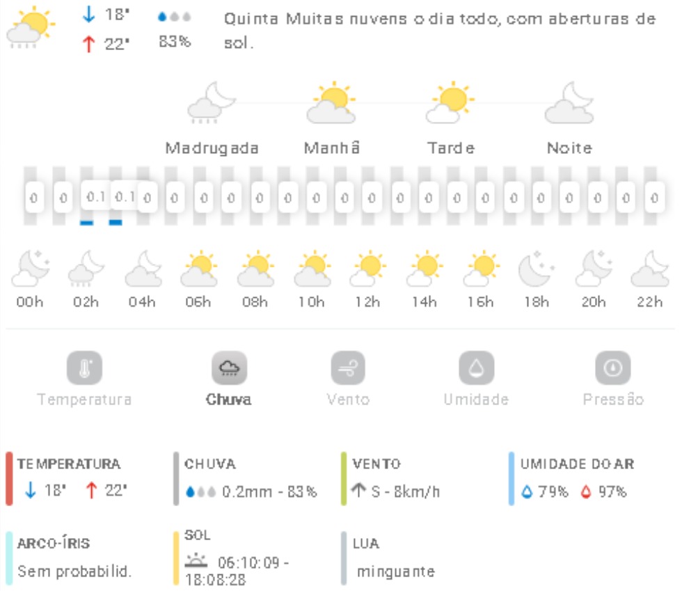 Penha Previsão do tempo Previsão do tempo para Penha: quinta-feira, 18 de setembro 2025 17 de setembro de 2025 PUBLICIDADE Imagem: climatempo.com.br Continue Reading Anterior [VÍDEO] Secretaria de Trânsito de Penha autua caminhões parados em local proibido e veículos de concretagem bloqueando ruasSeguinte [VÍDEO] Penha: motorista de Renault Clio bate e arranca poste; moradores da Santa Lídia ficam sem energia elétrica Publicações mais recentes Penha Previsão do tempo Previsão do tempo para Penha: sábado, 7 de março de 2026 6 de março de 2026 Penha Polícia Operação Rede Catarina prende criminoso no Centro de Penha pelo crime de violência doméstica 6 de março de 2026 Penha Polícia Polícia Militar prende homem pelos crimes de ameaça e perseguição em Penha 6 de março de 2026