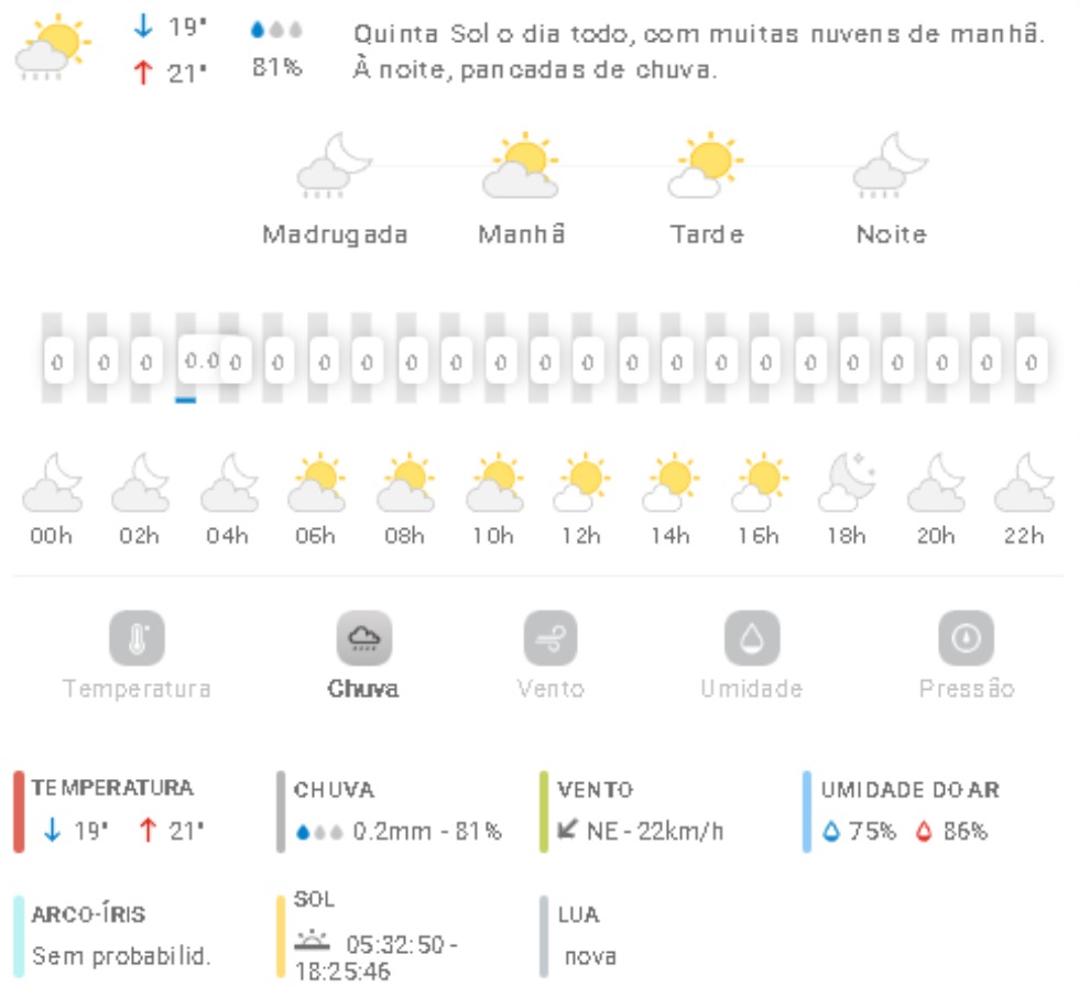 Penha Previsão do tempo Previsão do tempo para Penha: quinta-feira, 23 de outubro 2025 22 de outubro de 2025 PUBLICIDADE Imagem: climatempo.com.br Continue Reading Anterior [VÍDEO] Dupla é flagrada com atos de vandalismo e causa prejuízos para moradores de PenhaSeguinte [VÍDEO] Criminosos assaltam joalheria de Penha após renderem e amarrarem proprietário Publicações mais recentes A voz do povo Esporte Penha Edital do Bolsa Atleta vira alvo de reclamações em Penha 7 de março de 2026 A voz do povo Educação Penha Trânsito Problema com rota de ônibus com estudantes de Penha faz crianças chegarem muito tarde em casa; pais reclamam 7 de março de 2026 A voz do povo Educação Penha ACS, ACE e professores da rede municipal de Penha indagam reajuste anual 7 de março de 2026