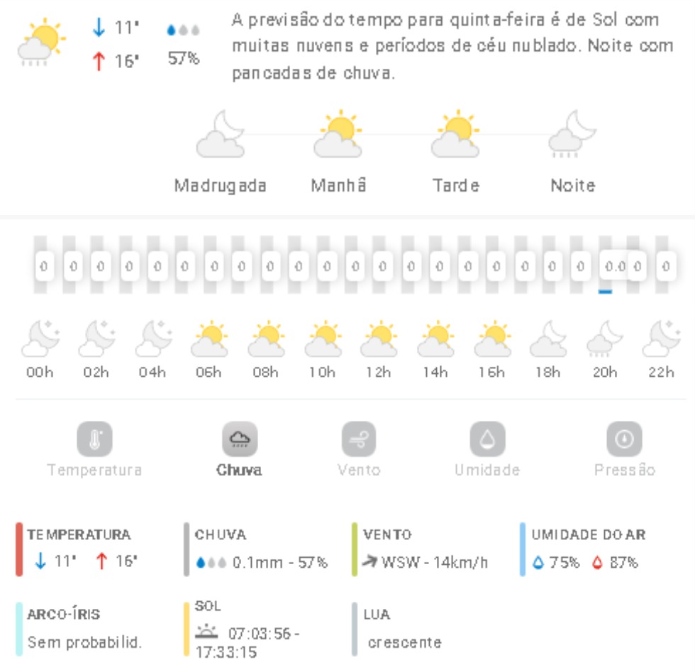 Penha Previsão do tempo Previsão do tempo para Penha: quinta-feira, 3 de julho 2025 2 de julho de 2025 PUBLICIDADE Imagem: climatempo.com.br Continue Reading Anterior Potenciais turísticos de Penha são apresentados em evento no MercosulSeguinte Piçarraiá 2025 começa nesta sexta-feira (04) com expectativa de grande público Publicações mais recentes A voz do povo Penha Trânsito [VÍDEO] Vizinhos de cruzamento do Gravatá com a Santa Lídia pedem medidas de segurança após mais um acidente de trânsito 7 de março de 2026 A voz do povo Esporte Penha Edital do Bolsa Atleta vira alvo de reclamações em Penha 7 de março de 2026 A voz do povo Educação Penha Trânsito Problema com rota de ônibus com estudantes de Penha faz crianças chegarem muito tarde em casa; pais reclamam 7 de março de 2026
