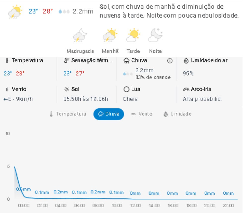 Penha Previsão do tempo Previsão do tempo para Penha: quinta-feira, 5 de fevereiro de 2026 4 de fevereiro de 2026 PUBLICIDADE Imagem: climatempo.com.br Continue Reading Anterior [VÍDEO] Penha: homem invade propriedade na Praia da Armação; câmera de vigilância gravou o crimeSeguinte Tentativa de golpe faz morador de Penha emitir alerta Publicações mais recentes Penha Previsão do tempo Previsão do tempo para Penha: sábado, 7 de março de 2026 6 de março de 2026 Penha Polícia Operação Rede Catarina prende criminoso no Centro de Penha pelo crime de violência doméstica 6 de março de 2026 Penha Polícia Polícia Militar prende homem pelos crimes de ameaça e perseguição em Penha 6 de março de 2026