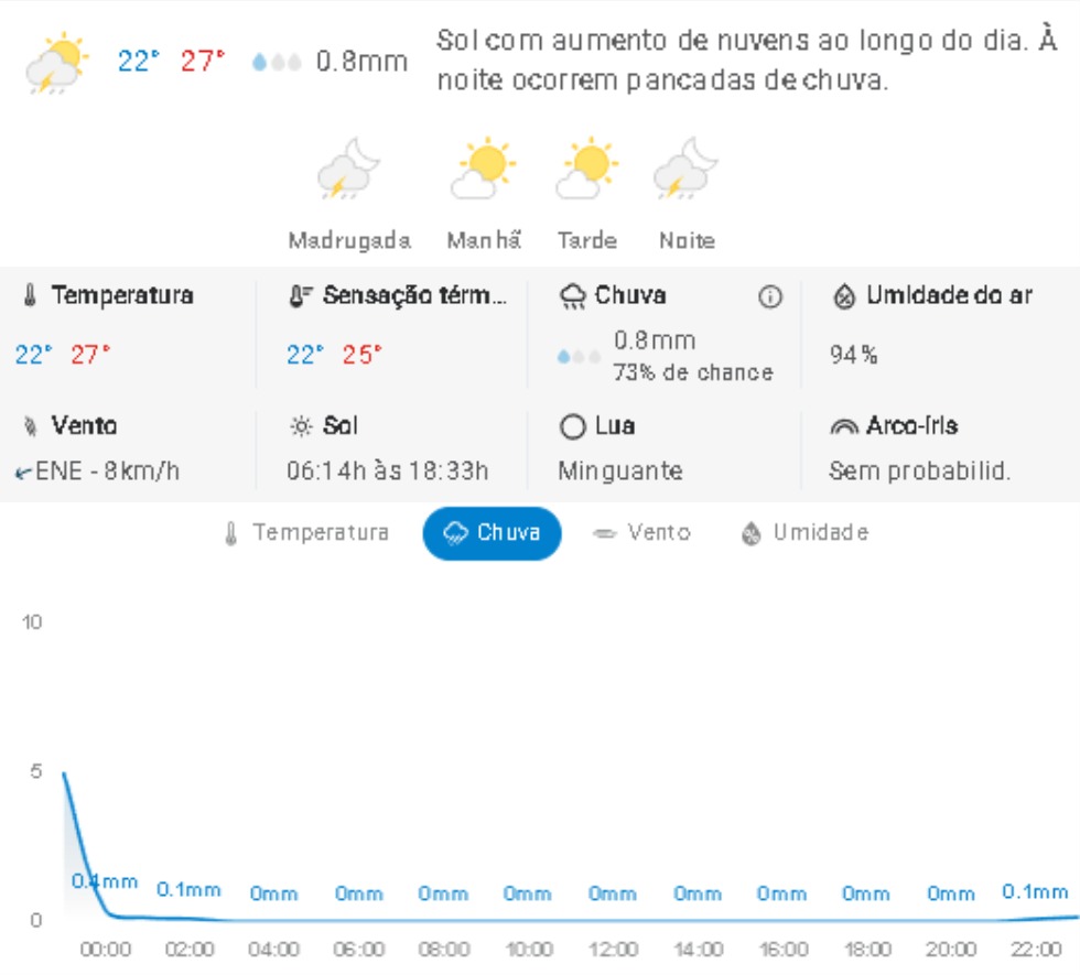 Penha Previsão do tempo Previsão do tempo para Penha: sábado, 14 de março de 2026 13 de março de 2026 PUBLICIDADE Imagem: climatempo.com.br Continue Reading Anterior Moradores do Centro de Penha denunciam cobrança da taxa de ligação do esgotamento sanitário e outros problemas relacionados à Águas de Penha Publicações mais recentes A voz do povo Matérias Penha Moradores do Centro de Penha denunciam cobrança da taxa de ligação do esgotamento sanitário e outros problemas relacionados à Águas de Penha 13 de março de 2026 A voz do povo Penha Polícia [VÍDEO] Residência em Penha é invadida por criminosos; família lança vaquinha para comprar eletrodomésticos novamente 13 de março de 2026 A voz do povo Penha Polícia Jovem de 17 anos desaparece em Penha 13 de março de 2026