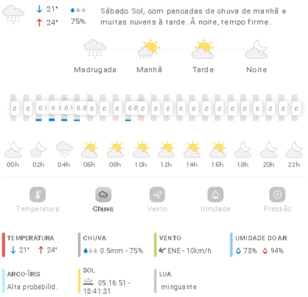 Penha Previsão do tempo Previsão do tempo para Penha: sábado, 15 de novembro 2025 14 de novembro de 2025 PUBLICIDADE Imagem: climatempo.com.br Continue Reading Anterior Mordida na esposa e ameaça contra avó: casos de violência doméstica foram registrados em Penha e em Barra Velha nesta sexta-feira (14)Seguinte [VÍDEO] Esgoto vertendo sobre rua do Gravatá de Penha é problema crônico, denunciam vizinhos Publicações mais recentes A voz do povo Esporte Penha Edital do Bolsa Atleta vira alvo de reclamações em Penha 7 de março de 2026 A voz do povo Educação Penha Trânsito Problema com rota de ônibus com estudantes de Penha faz crianças chegarem muito tarde em casa; pais reclamam 7 de março de 2026 A voz do povo Educação Penha ACS, ACE e professores da rede municipal de Penha indagam reajuste anual 7 de março de 2026