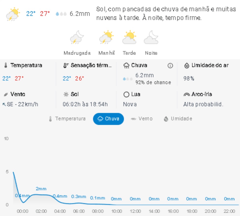 Penha Previsão do tempo Previsão do tempo para Penha: sábado, 21 de fevereiro de 2026 20 de fevereiro de 2026 PUBLICIDADE Imagem: climatempo.com.br Continue Reading Anterior Ministério Público de Santa Catarina instaura inquérito civil contra Aquiles da Costa, ex-prefeito de PenhaSeguinte Penha: Prefeitura promete manutenção em condicionador de ar, mas crianças e professores seguem sofrendo com calor Publicações mais recentes Penha Previsão do tempo Previsão do tempo para Penha: sábado, 7 de março de 2026 6 de março de 2026 Penha Polícia Operação Rede Catarina prende criminoso no Centro de Penha pelo crime de violência doméstica 6 de março de 2026 Penha Polícia Polícia Militar prende homem pelos crimes de ameaça e perseguição em Penha 6 de março de 2026