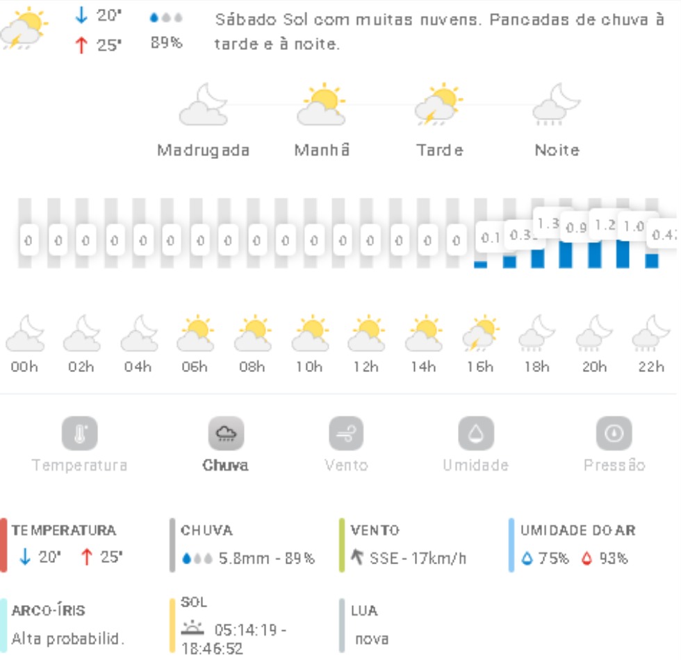 Penha Previsão do tempo Previsão do tempo para Penha: sábado, 22 de novembro 2025 21 de novembro de 2025 PUBLICIDADE Imagem: climatempo.com.br Continue Reading Anterior Movimenta Penha: atletas participam do exame de faixa preta de judô e do Meeting InterestadualSeguinte Moradora de Penha pede manutenção em sua rua e reclama dos serviços anteriores: “a máquina quando passa só faz nojeira” Publicações mais recentes A voz do povo Esporte Penha Edital do Bolsa Atleta vira alvo de reclamações em Penha 7 de março de 2026 A voz do povo Educação Penha Trânsito Problema com rota de ônibus com estudantes de Penha faz crianças chegarem muito tarde em casa; pais reclamam 7 de março de 2026 A voz do povo Educação Penha ACS, ACE e professores da rede municipal de Penha indagam reajuste anual 7 de março de 2026
