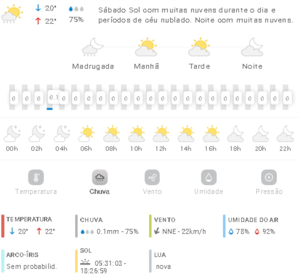 Penha Previsão do tempo Previsão do tempo para Penha: sábado, 25 de outubro 2025 24 de outubro de 2025 PUBLICIDADE Imagem: climatempo.com.br Continue Reading Anterior Penha promove evento de capoeira e folclore afro-brasileiro neste domingo (26)Seguinte [VÍDEO] Penha: buraco se abre em ciclovia e coloca ciclistas em risco Publicações mais recentes A voz do povo Esporte Penha Edital do Bolsa Atleta vira alvo de reclamações em Penha 7 de março de 2026 A voz do povo Educação Penha Trânsito Problema com rota de ônibus com estudantes de Penha faz crianças chegarem muito tarde em casa; pais reclamam 7 de março de 2026 A voz do povo Educação Penha ACS, ACE e professores da rede municipal de Penha indagam reajuste anual 7 de março de 2026