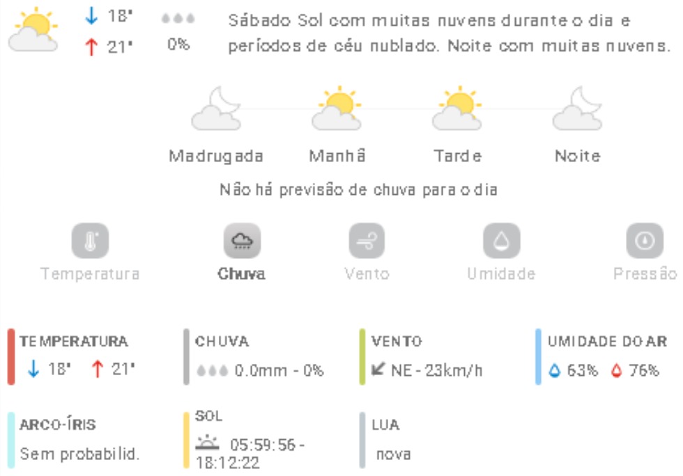 Penha Previsão do tempo Previsão do tempo para Penha: sábado, 27 de setembro 2025 26 de setembro de 2025 PUBLICIDADE Imagem: climatempo.com.br Continue Reading Anterior Nota falecimento: Lourdes de Godoi CoelhoSeguinte [VÍDEO] Capivara morre atropelada e ocupantes de motocicleta ficam feridos em acidente na Transbeto Publicações mais recentes A voz do povo Esporte Penha Edital do Bolsa Atleta vira alvo de reclamações em Penha 7 de março de 2026 A voz do povo Educação Penha Trânsito Problema com rota de ônibus com estudantes de Penha faz crianças chegarem muito tarde em casa; pais reclamam 7 de março de 2026 A voz do povo Educação Penha ACS, ACE e professores da rede municipal de Penha indagam reajuste anual 7 de março de 2026