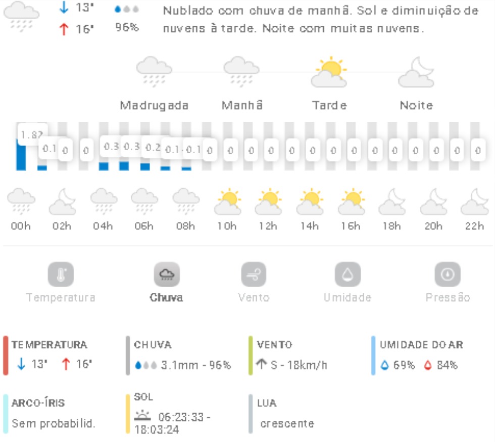 Penha Previsão do tempo Previsão do tempo para Penha: sábado, 6 de setembro 2025 5 de setembro de 2025 PUBLICIDADE Imagem: climatempo.com.br Continue Reading Anterior Penha entrega materiais didáticos em Braille para aluno BrunoSeguinte [VÍDEO] Lamaçal em Penha: Rua da liberdade gera pedido de socorro por parte dos moradores Publicações mais recentes Penha Previsão do tempo Previsão do tempo para Penha: domingo, 8 de março de 2026 7 de março de 2026 A voz do povo Penha Polícia [VÍDEO] Penha: banhistas se revoltam e registram consumo de drogas em praia no meio de famílias 7 de março de 2026 A voz do povo Natureza Penha Turismo Caravelas-portuguesas surgem em grande quantidade em praias de Penha 7 de março de 2026