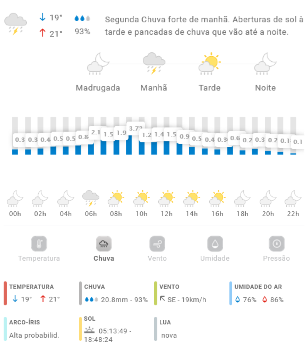 Penha Prefeitura Previsão do tempo para Penha: segunda-feira, 24 de novembro 2025 23 de novembro de 2025 PUBLICIDADE Imagem: climatempo.com.br Continue Reading Anterior [VÍDEO] Piloto morre após acidente durante apresentação de manobras radicais com motos em PenhaSeguinte [VÍDEO] Buracos crônicos em rua de Penha completam anos sem solução e viram símbolo de descaso Publicações mais recentes A voz do povo Penha Trânsito [VÍDEO] Vizinhos de cruzamento do Gravatá com a Santa Lídia pedem medidas de segurança após mais um acidente de trânsito 7 de março de 2026 A voz do povo Esporte Penha Edital do Bolsa Atleta vira alvo de reclamações em Penha 7 de março de 2026 A voz do povo Educação Penha Trânsito Problema com rota de ônibus com estudantes de Penha faz crianças chegarem muito tarde em casa; pais reclamam 7 de março de 2026