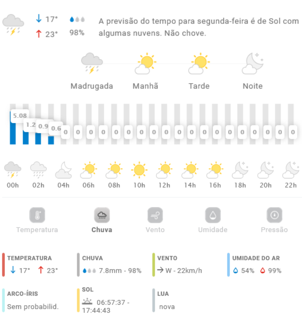 Penha Previsão do tempo Previsão do tempo para Penha: segunda-feira, 28 de julho 2025 27 de julho de 2025 PUBLICIDADE Imagem: climatempo.com.br Continue Reading Anterior [VÍDEO] Capivara é atingida por veículo na Transbeto e morre às margens da viaSeguinte [VÍDEO] Penha: morador de Armação do Itapocoroy cobra atenção da Secretaria de Obras para problema de drenagem em sua rua Publicações mais recentes A voz do povo Penha Trânsito [VÍDEO] Vizinhos de cruzamento do Gravatá com a Santa Lídia pedem medidas de segurança após mais um acidente de trânsito 7 de março de 2026 A voz do povo Esporte Penha Edital do Bolsa Atleta vira alvo de reclamações em Penha 7 de março de 2026 A voz do povo Educação Penha Trânsito Problema com rota de ônibus com estudantes de Penha faz crianças chegarem muito tarde em casa; pais reclamam 7 de março de 2026