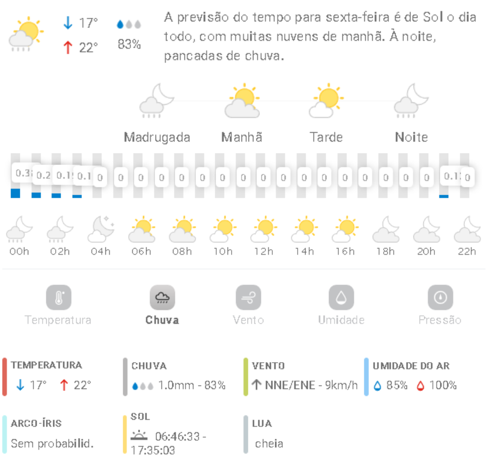 Penha Previsão do tempo Previsão do tempo para Penha: sexta-feira, 16 de maio 2025 15 de maio de 2025 PUBLICIDADE Imagem: climatempo.com.br Continue Reading Anterior [VÍDEO] Bate-Papo Online com o optometrista comportamental Jeferson Veiga, falando tudo sobre saúde visualSeguinte Conscientização de trânsito: Penha receberá Carreta do Cinema Rodoviário da PRF entre 26 e 30 de maio Publicações mais recentes A voz do povo Esporte Penha Edital do Bolsa Atleta vira alvo de reclamações em Penha 7 de março de 2026 A voz do povo Educação Penha Trânsito Problema com rota de ônibus com estudantes de Penha faz crianças chegarem muito tarde em casa; pais reclamam 7 de março de 2026 A voz do povo Educação Penha ACS, ACE e professores da rede municipal de Penha indagam reajuste anual 7 de março de 2026