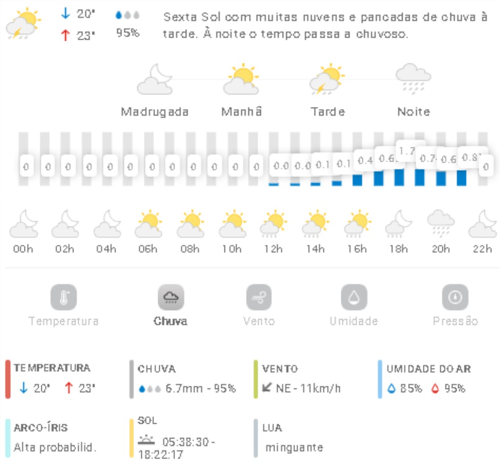Penha Previsão do tempo Previsão do tempo para Penha: sexta-feira, 17 de outubro 2025 16 de outubro de 2025 PUBLICIDADE Imagem: climatempo.com.br Continue Reading Anterior [VÍDEO] Penha: “barulho fantasma” assusta moradores em rua do MariscalSeguinte [VÍDEO] Penha: homem faz desabafo sobre atitude de vizinhos que ateiam fogo em entulho Publicações mais recentes A voz do povo Esporte Penha Edital do Bolsa Atleta vira alvo de reclamações em Penha 7 de março de 2026 A voz do povo Educação Penha Trânsito Problema com rota de ônibus com estudantes de Penha faz crianças chegarem muito tarde em casa; pais reclamam 7 de março de 2026 A voz do povo Educação Penha ACS, ACE e professores da rede municipal de Penha indagam reajuste anual 7 de março de 2026