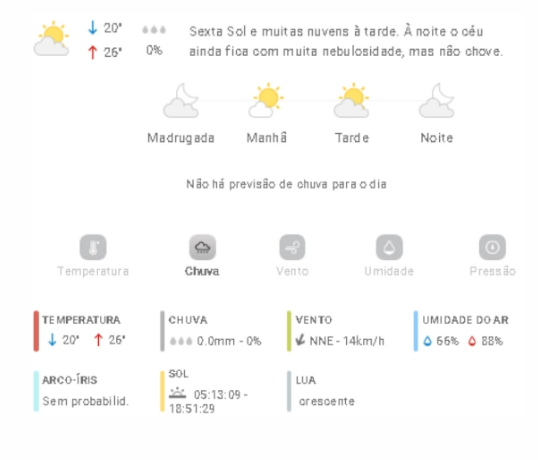 Penha Previsão do tempo Previsão do tempo para Penha: sexta-feira, 28 de novembro 2025 27 de novembro de 2025 PUBLICIDADE Imagem: climatempo.com.br Continue Reading Anterior [VÍDEO] Trânsito travado todo dia: motoristas cobram solução urgente na BR-101Seguinte [VÍDEO] Buraco surge na entrada de garagem e morador pede providência à Prefeitura de Penha Publicações mais recentes A voz do povo Esporte Penha Edital do Bolsa Atleta vira alvo de reclamações em Penha 7 de março de 2026 A voz do povo Educação Penha Trânsito Problema com rota de ônibus com estudantes de Penha faz crianças chegarem muito tarde em casa; pais reclamam 7 de março de 2026 A voz do povo Educação Penha ACS, ACE e professores da rede municipal de Penha indagam reajuste anual 7 de março de 2026