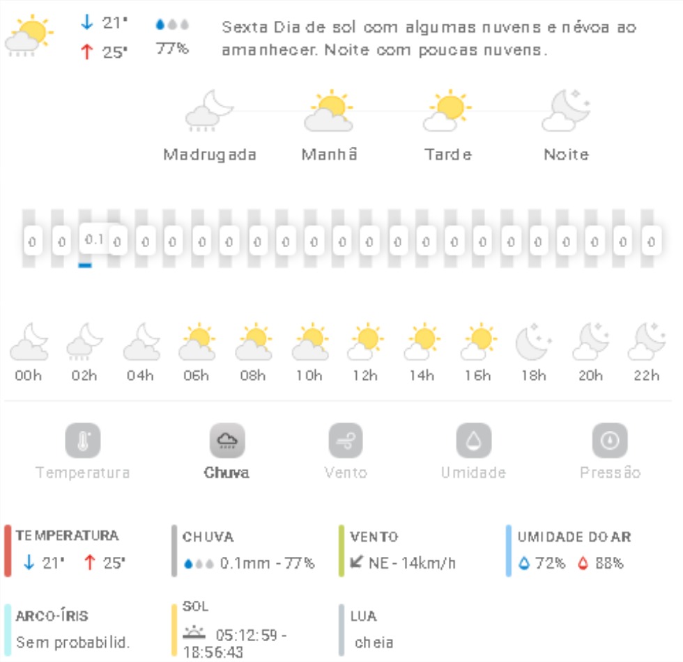 Penha Previsão do tempo Previsão do tempo para Penha: sexta-feira, 5 de dezembro 2025 4 de dezembro de 2025 PUBLICIDADE Imagem: climatempo.com.br Continue Reading Anterior [VÍDEO] Criminoso invade casa e furta bicicleta em PenhaSeguinte Após obra de esgoto em Penha, buraco profundo não fechado é alvo de pancadas de carros Publicações mais recentes A voz do povo Esporte Penha Edital do Bolsa Atleta vira alvo de reclamações em Penha 7 de março de 2026 A voz do povo Educação Penha Trânsito Problema com rota de ônibus com estudantes de Penha faz crianças chegarem muito tarde em casa; pais reclamam 7 de março de 2026 A voz do povo Educação Penha ACS, ACE e professores da rede municipal de Penha indagam reajuste anual 7 de março de 2026