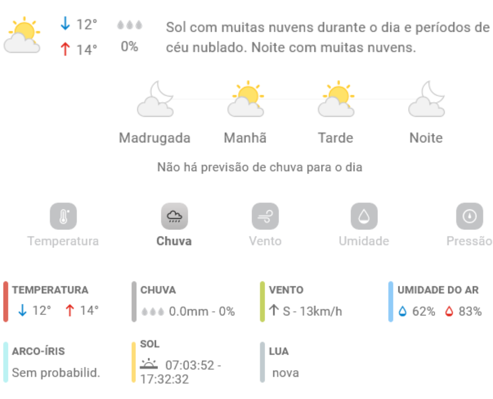 Penha Previsão do tempo Previsão do tempo para Penha: terça-feira, 1 de julho 2025 30 de junho de 2025 PUBLICIDADE Imagem: climatempo.com.br Continue Reading Anterior [VÍDEO] Caminhão de concreto é flagrado derramando materiais em rua de PenhaSeguinte Penha: gata é envenenada no bairro Armação; família faz apelo por justiça e deixa alerta Publicações mais recentes Penha Previsão do tempo Previsão do tempo para Penha: domingo, 8 de março de 2026 7 de março de 2026 A voz do povo Penha Polícia [VÍDEO] Penha: banhistas se revoltam e registram consumo de drogas em praia no meio de famílias 7 de março de 2026 A voz do povo Natureza Penha Turismo Caravelas-portuguesas surgem em grande quantidade em praias de Penha 7 de março de 2026
