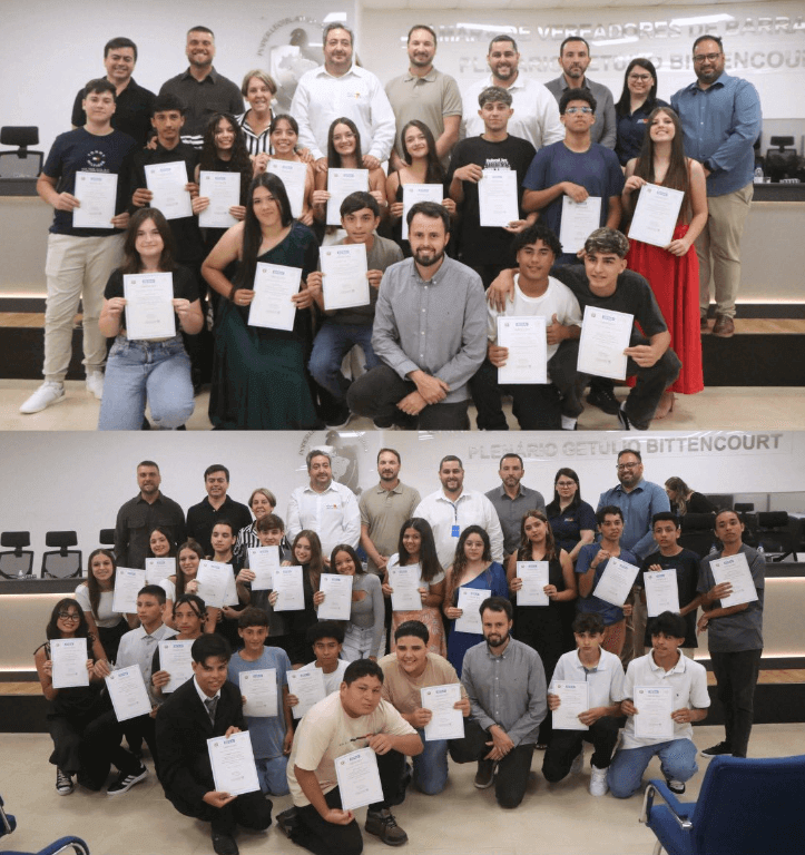 O programa Tecendo o Amanhã formou sua primeira turma dos cursos profissionalizantes oferecidos aos estudantes da rede municipal. Ao todo, 84 alunos concluíram a capacitação “Trilha de Atendimento e Vendas”, realizada pelo Senai. A cerimônia de entrega dos certificados ocorreu nesta quarta-feira (03), no Plenário da Câmara de Vereadores de Barra Velha.