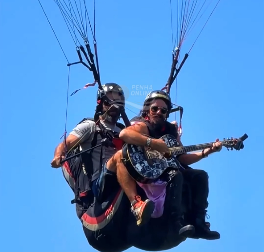 [VÍDEO] Raulzito73, o Raul Seixas de Penha, faz voo de parapente e dá um show nos céus da cidade