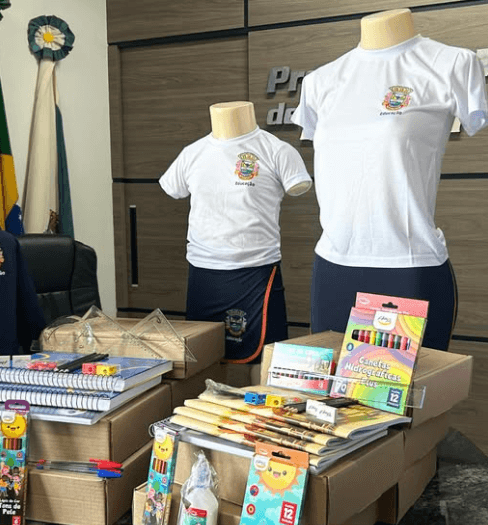 Tanto os uniformes quanto os materiais escolares serão entregues conforme organização de cada unidade escolar. Todos os alunos da Pré-Escola, dos Anos Iniciais (1º ao 5º ano) e dos Anos Finais (6º ao 9º ano) receberão o kit de material escolar e os uniformes.