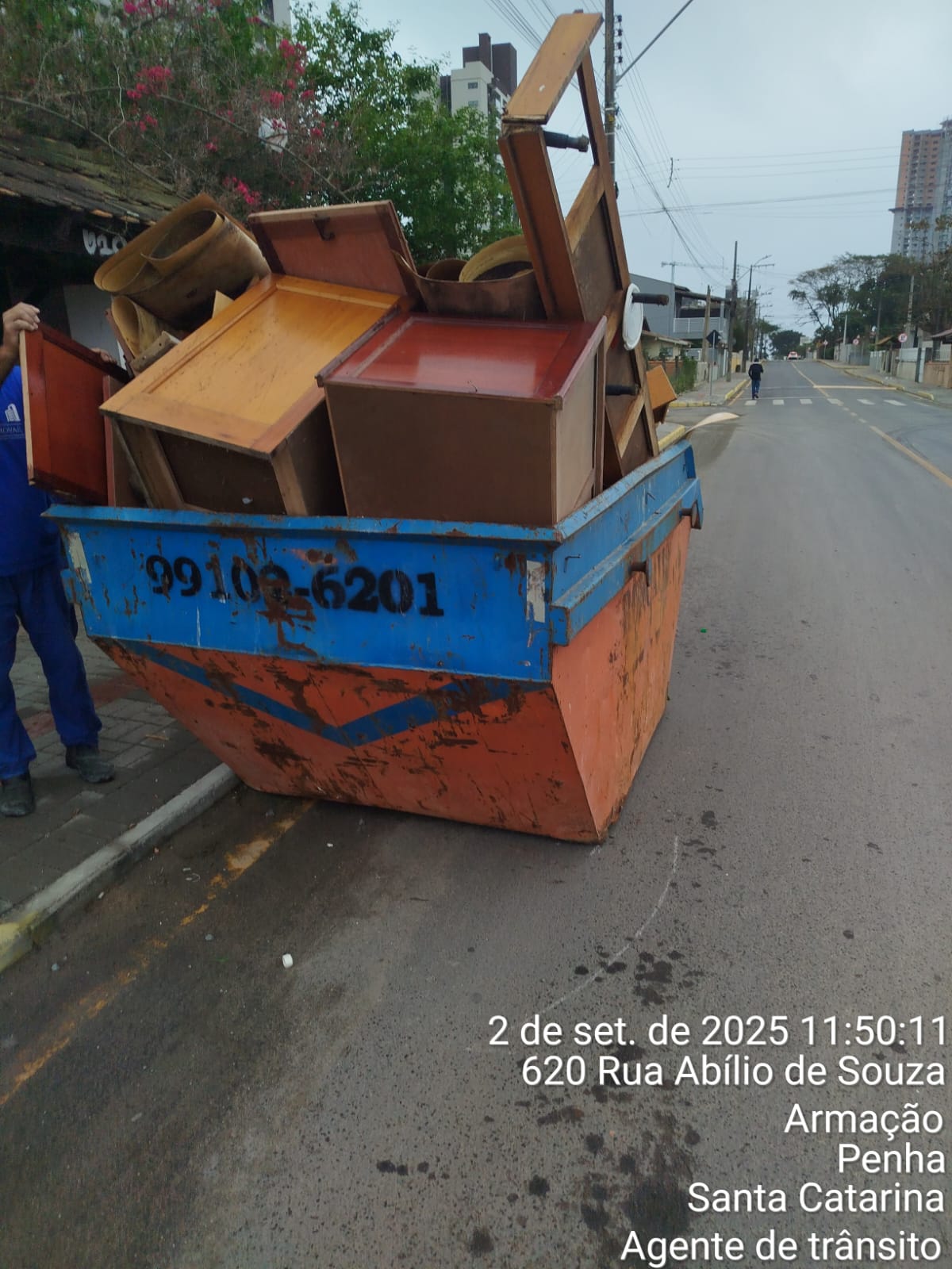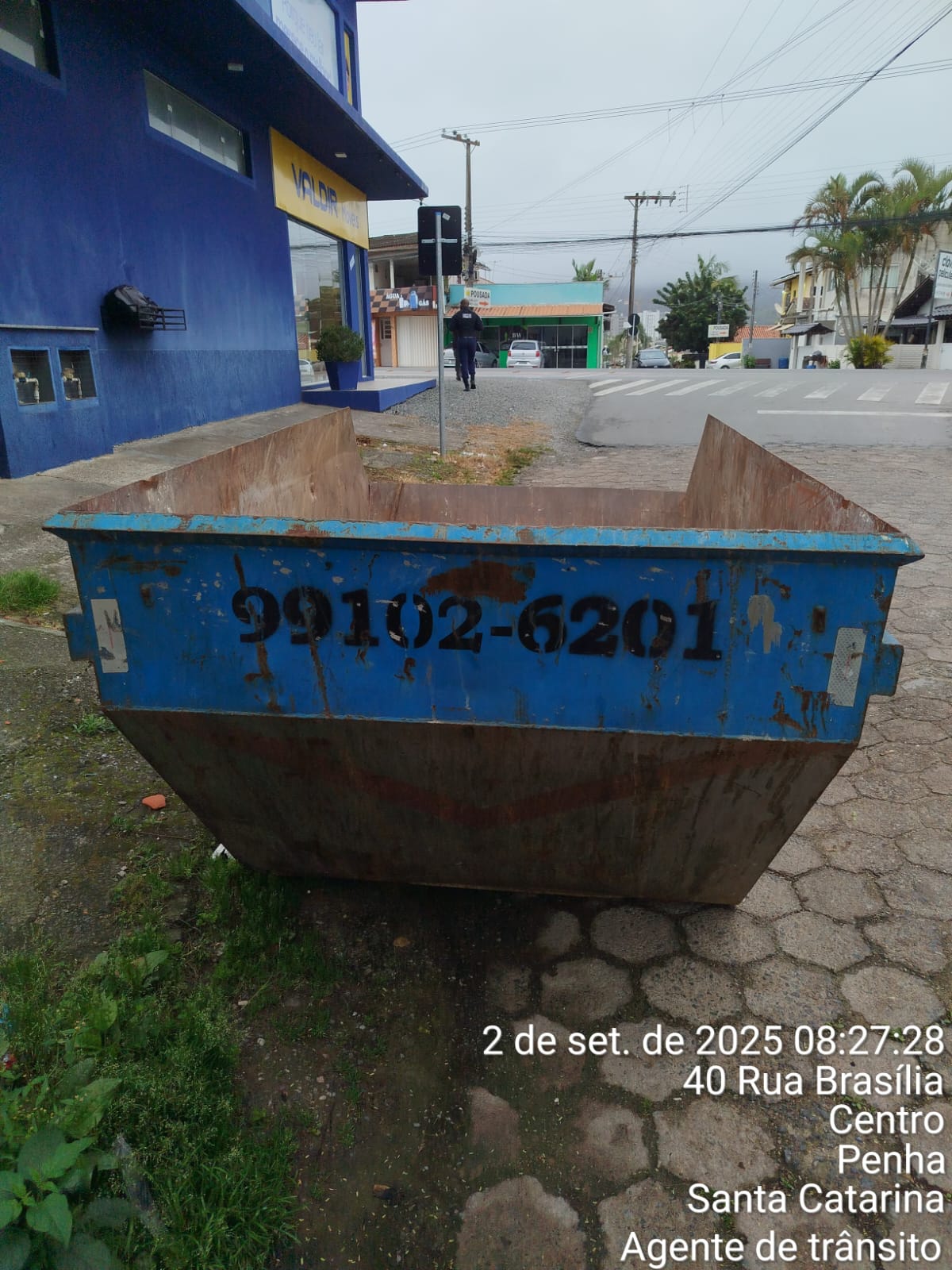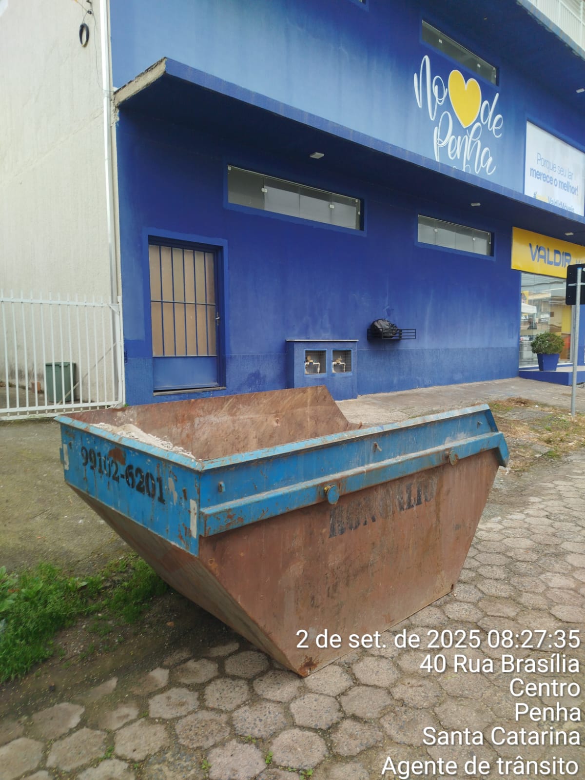 Nesta semana, a Secretaria de Trânsito de Penha iniciou a fiscalização de caçambas de entulho deixadas irregularmente em vias públicas da cidade. A medida busca coibir o descumprimento da legislação de trânsito e reforçar a organização urbana. “Hoje iniciamos a fiscalização das caçambas de entulho colocadas em vias públicas onde já existe regulamentação de trânsito com placas de Proibido Parar e Estacionar. A ação visa garantir o cumprimento do artigo 95 do CTB, que determina que nenhuma obra ou atividade que interfira no trânsito pode ser realizada sem a devida autorização do órgão competente”, afirma o secretário de trânsito, Marinho Alves.