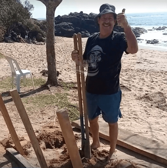 [VÍDEO] Seu Madruga instala mais um banco na orla para contemplação da natureza em Penha