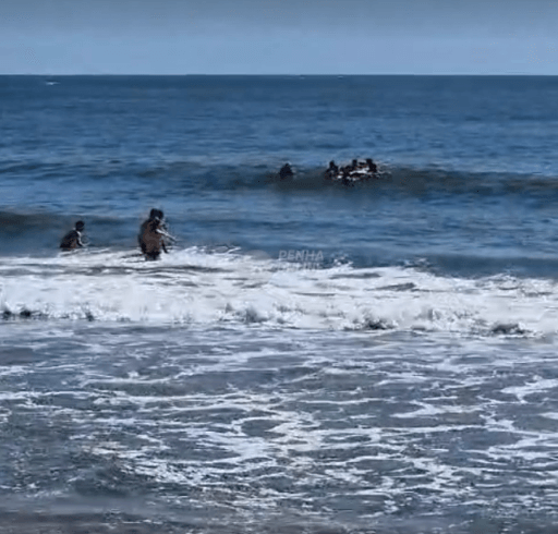 Um momento de tensão foi registrado na Praia do Quilombo, em Penha, após uma banhista ser arrastada por uma corrente de retorno no mar. A situação foi percebida por um surfista que estava próximo e agiu rapidamente, acionando os guarda-vidas que atuavam na área. Um vídeo gravado por um banhista mostra a mobilização no local e a atuação dos profissionais de salvamento, que conseguiram retirar a mulher da água e evitar uma tragédia. A rápida percepção do surfista e a resposta dos salva-vidas foram fundamentais para o desfecho positivo da ocorrência.