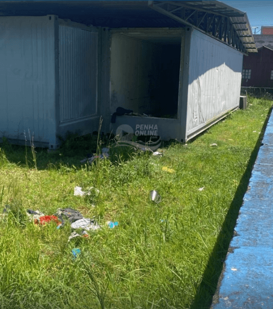 Um terreno de propriedade da Prefeitura, localizado atrás da Unidade Básica de Saúde Nossa Senhora de Fátima, em Penha, se transformou em área de ocupação por andarilhos e foco de sujeira, causando preocupação entre moradores e profissionais da unidade. No local, que abriga alguns containers, foram identificadas duas pessoas em situação de rua utilizando o espaço como abrigo.