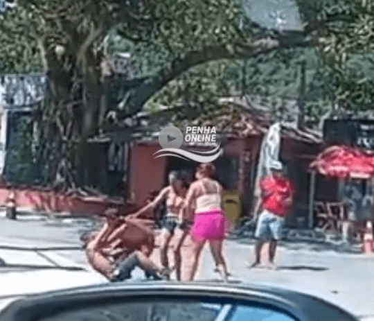 [VÍDEO] Trocação franca em Penha: grupo de pessoas briga no meio da rua na Praia de São Miguel